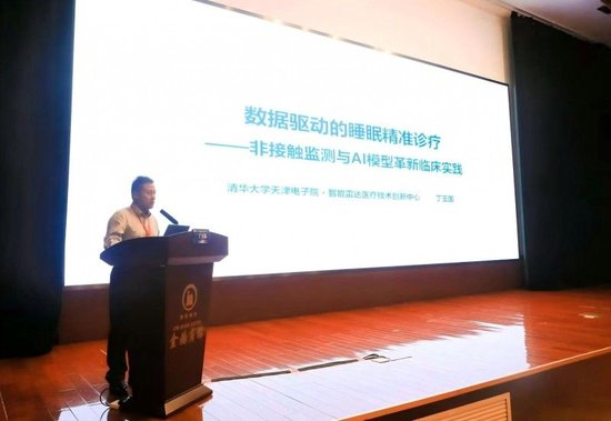 清雷科技创始人兼CEO丁玉国在会上作了题为《数据驱动的睡眠精准诊疗——非接触监测与AI模型革新临床实践》的专题分享。他从临床实际需求出发,深入浅出地介绍了毫米波雷达技术在睡眠监测中的工作原理与应用优势,指出该技术能够以无感、无接触的方式实时捕捉使用者的呼吸、心率、体动等生理信号,并依托AI算法实现睡眠分期、事件判读与报告生成,为医生提供更客观、连续的诊断依据。