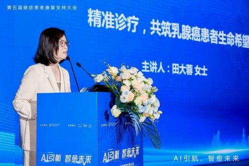阿斯利康中国肿瘤业务乳腺癌事业部负责人田大蓉女士在发言中分享了阿斯利康作为医药企业在推动精准诊疗方面的实践与承诺。田大蓉强调,公司以患者为中心,通过AI技术加速新药研发,提升研发效率,并致力于在中国推出更多肿瘤创新药物。她指出,公司携手合作伙伴支持推动了包括乳腺专病中心在内的多个诊疗一体化创新项目,希望通过数智科技赋能“筛诊治管”全病程管理。此外,阿斯利康持续开展患者教育与公益活动,传递规范、专业的疾病知识,助力患者实现高质量、有尊严的生存。