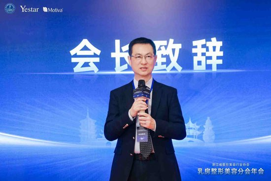 注:栗勇会长为浙整协乳房整形美容分会年会启幕致辞