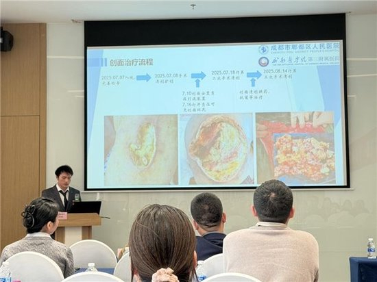 联盟旗下13家成员单位,包括成飞医院、蓬安县人民医院、遂宁市第三人民医院、天府新区人民医院、高坪区中医院、西充县人民医院、资中县人民医院、西南医科大学附属中医院、三台县人民医院、绵竹市中医医院以及成都市郫都区人民医院等,悉数到场。依次汇报了2025年度工作总结,分享了各自在烧伤与创面修复领域的实践成果与挑战。会议最后,由联盟负责人、成都市郫都区人民医院王乡宁主任作了《四川省第一届烧伤·创面修复联盟2025年度联盟工作总结》报告,全面回顾了联盟一年来的工作成效,并对未来发展提出了展望。会议还吸引了多家有意向加入联盟的单位列席观摩,彰显了联盟日益扩大的行业影响力与凝聚力。现场参会人数超过百人,学术氛围浓厚。